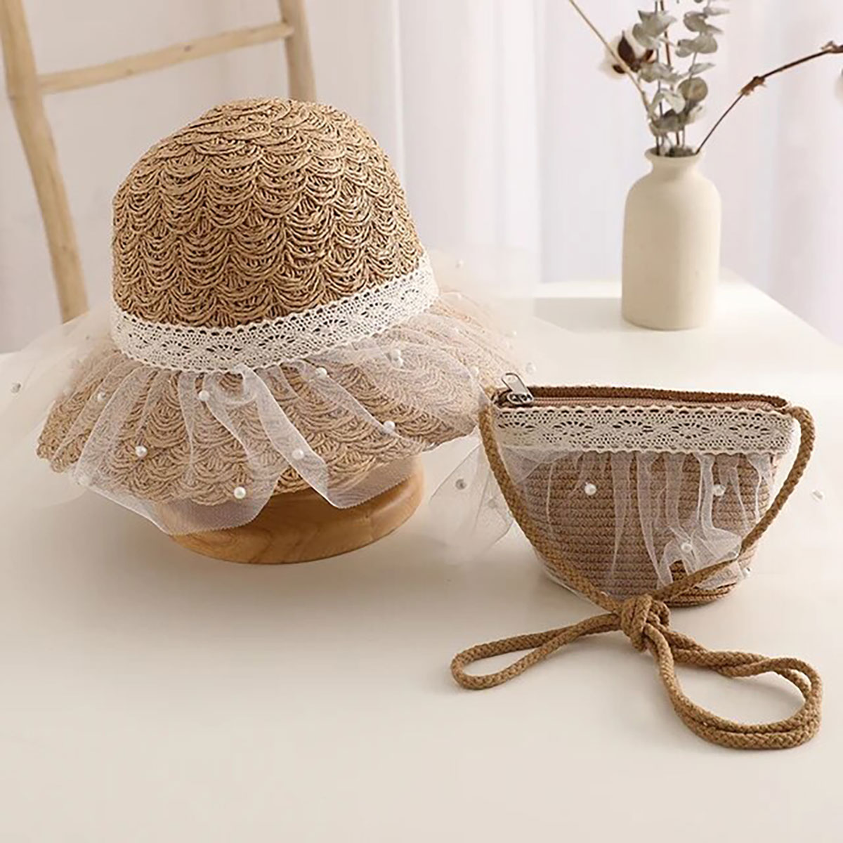 Introducing the JozzyKids Pearl Laced Brown Straw Hat with a Bag – a sophisticated and charming set for your little one’s stylish adventures! This brown straw hat, adorned with delicate pearl lace detailing, exudes elegance and playful charm. Paired with a matching bag, this set is the epitome of coordinated fashion.